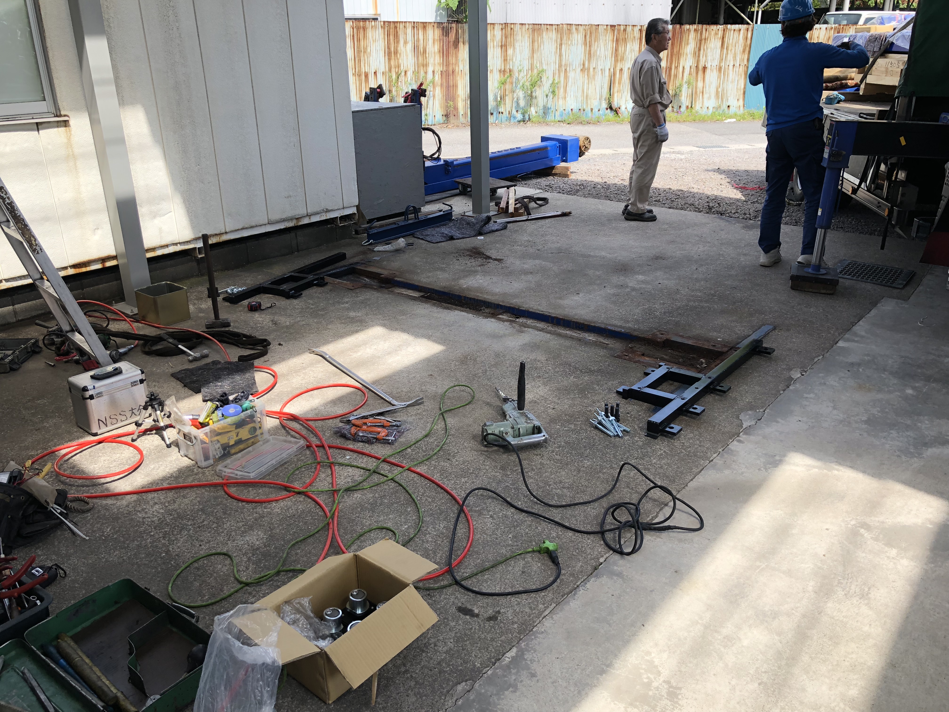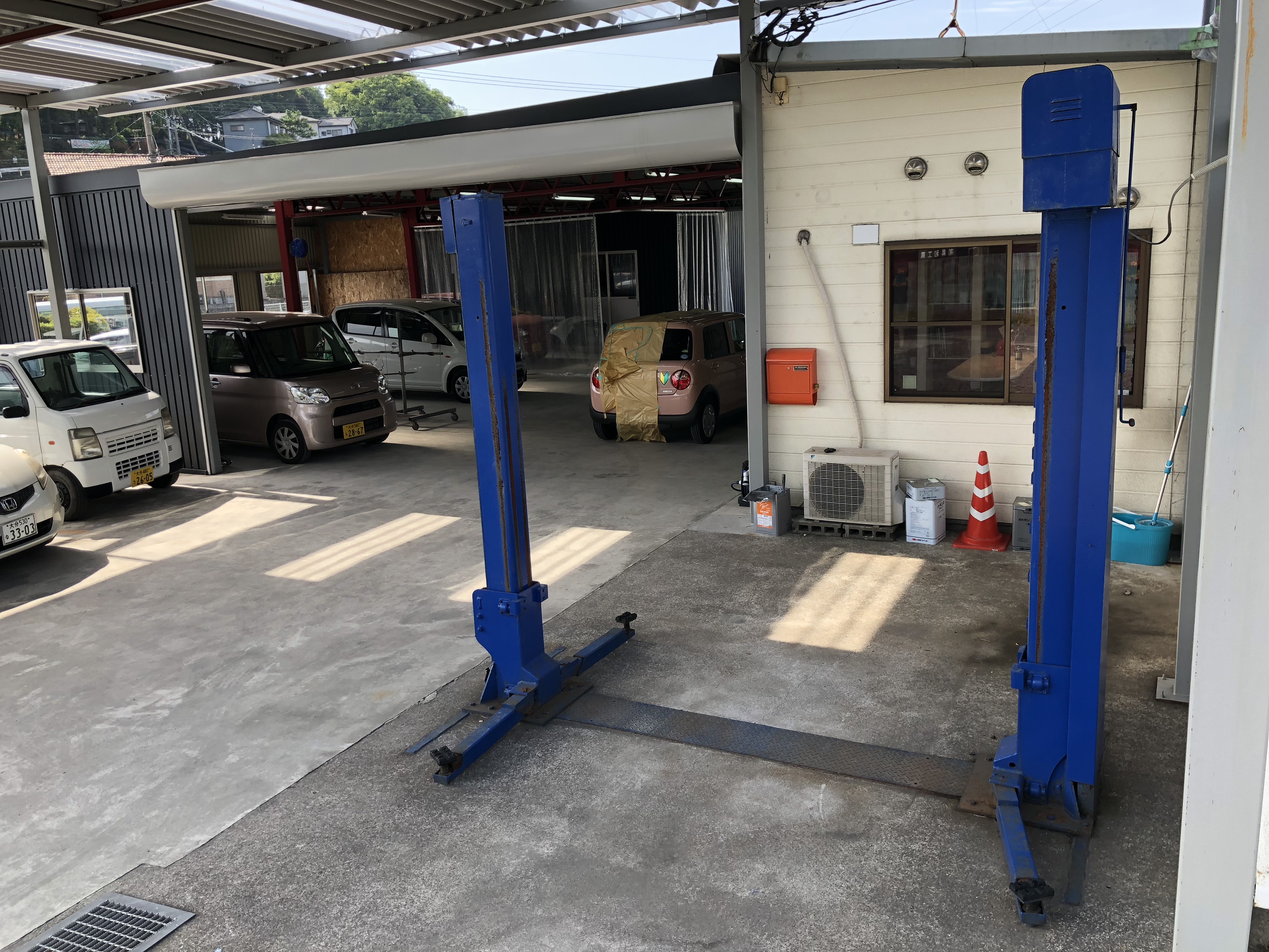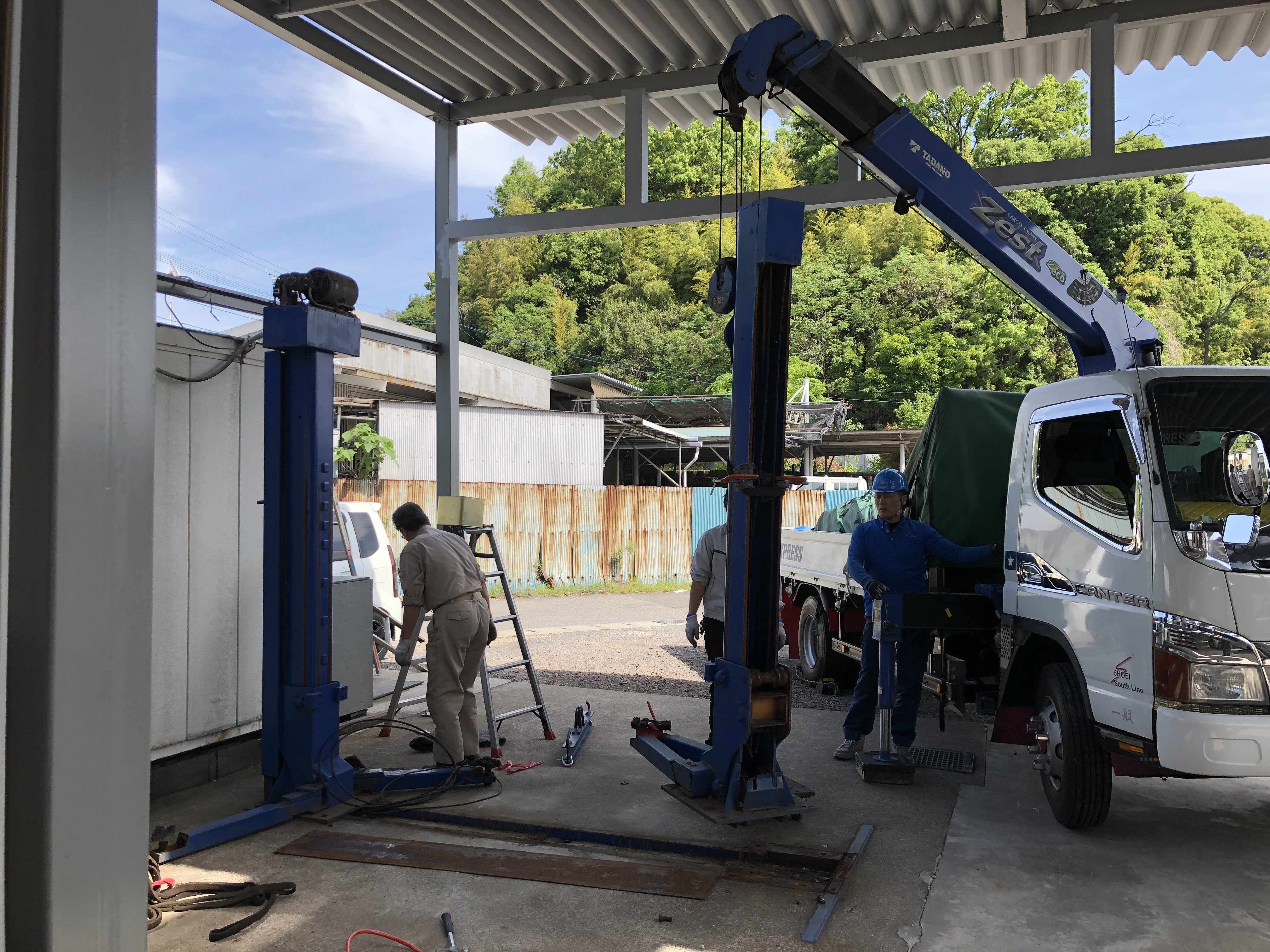 20年以上お世話になった2柱リフトもいよいよ動きが悪くなってきたので交換となりました